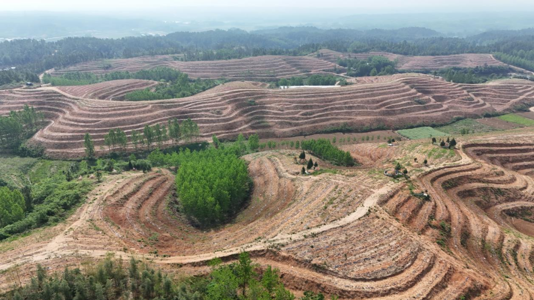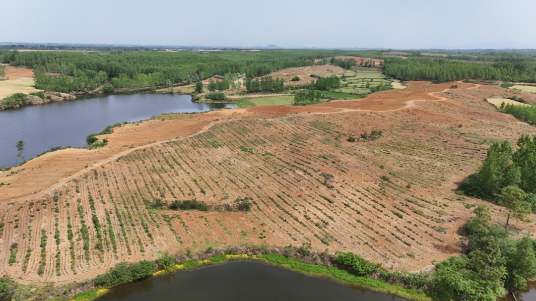 殷张山村,新栽种的油茶树整齐排列,让曾经荒芜沉寂的山坡重焕生机。