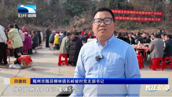 随州市随县柳林镇长岭坡村党支部书记田德权:分红比例(是)农户49%、集体51%,最高的能分到880块钱,最低的也能分到100块。