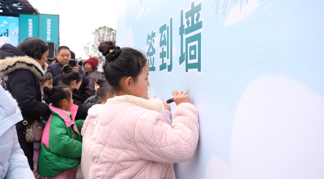 互动体验区里更是欢声笑语不断。湿地知识问答游戏前排起长队,孩子们通过趣味挑战赢取湿地公园文创礼品、多肉小盆栽及种子罐头等,在沉浸式体验中学习湿地知识、树立保护意识。与此同时,书法家们挥毫泼墨,现场书写春节对联,将传统年俗与生态文化巧妙融合。在“守护湿地”签名墙前,大家纷纷签下名字,表达共同守护家园的决心。