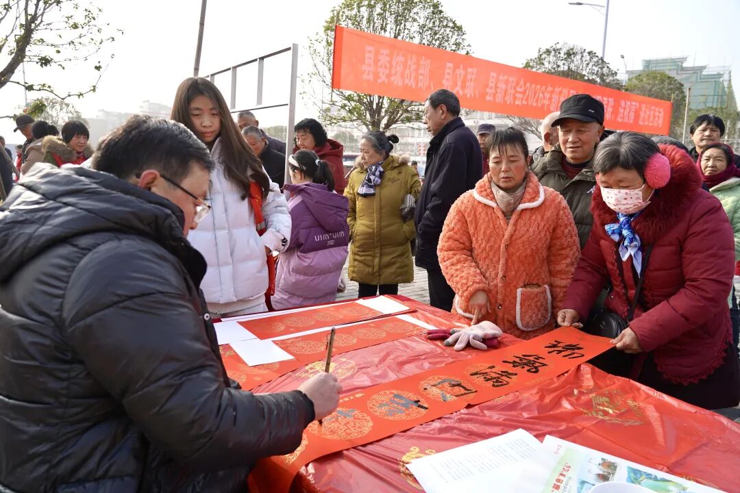 2月4日,县委统战部、县文联、县新联会在厉山镇迎水路菜市场联合举办“写春联、送祝福”进社区活动,以笔墨传情、以春联送福,为群众送上新春的温暖与祝福。