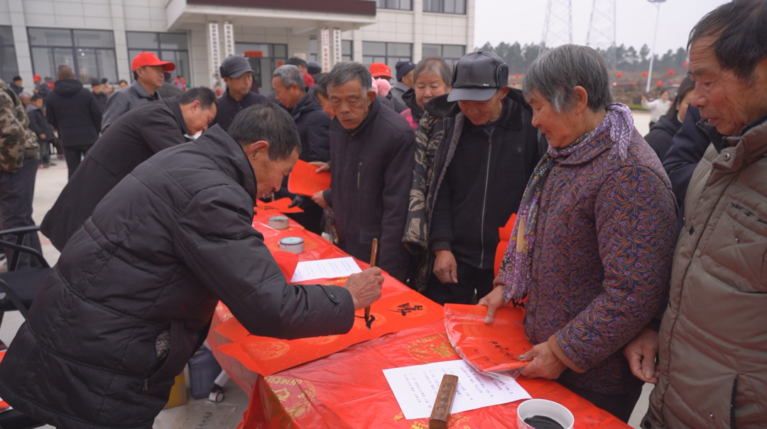春联书写摊位前,本地书法能人与返乡青年志愿者挥毫泼墨,“马跃山河添锦绣,春回大地焕生机”“骏马奔腾迎新岁,红梅绽放贺新春”等一副副寓意吉祥的春联新鲜出炉,村民们排队领取,脸上充满笑意。隔壁的趣味游戏区更是笑语喧天,拔河比赛、家庭套圈、“田野抓鸡”等游戏引得全场欢呼雀跃,寓意“吉”祥如意。
