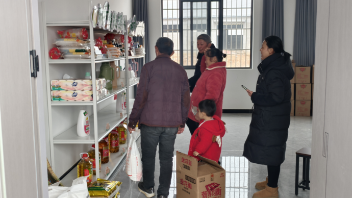 团圆饺子宴结束后,备受关注的2025年度积分兑换活动接踵而来,将节日喜悦与文明激励紧密结合。村民们手持“积分存折”,有序排队,根据各自积累的分数,兑换着心仪的米、面、食用油、洗衣液、纸巾等生活物资。现场气氛热烈,洋溢着收获的喜悦。