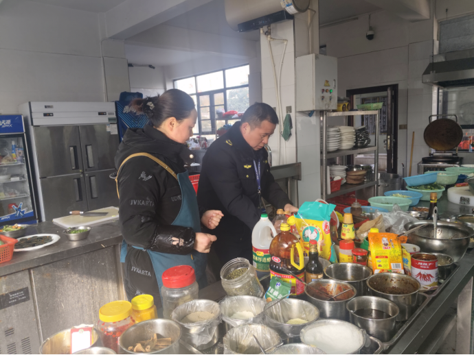 连日来,随县市场监管局万福店市场监管所开展春节前餐饮服务单位专项检查,全力保障群众春节期间食品安全,重点核查主体资质、健康证、食品安全制度、后厨卫生等内容,现场督促整改,守护群众“舌尖上的安全”。(石俊杰)