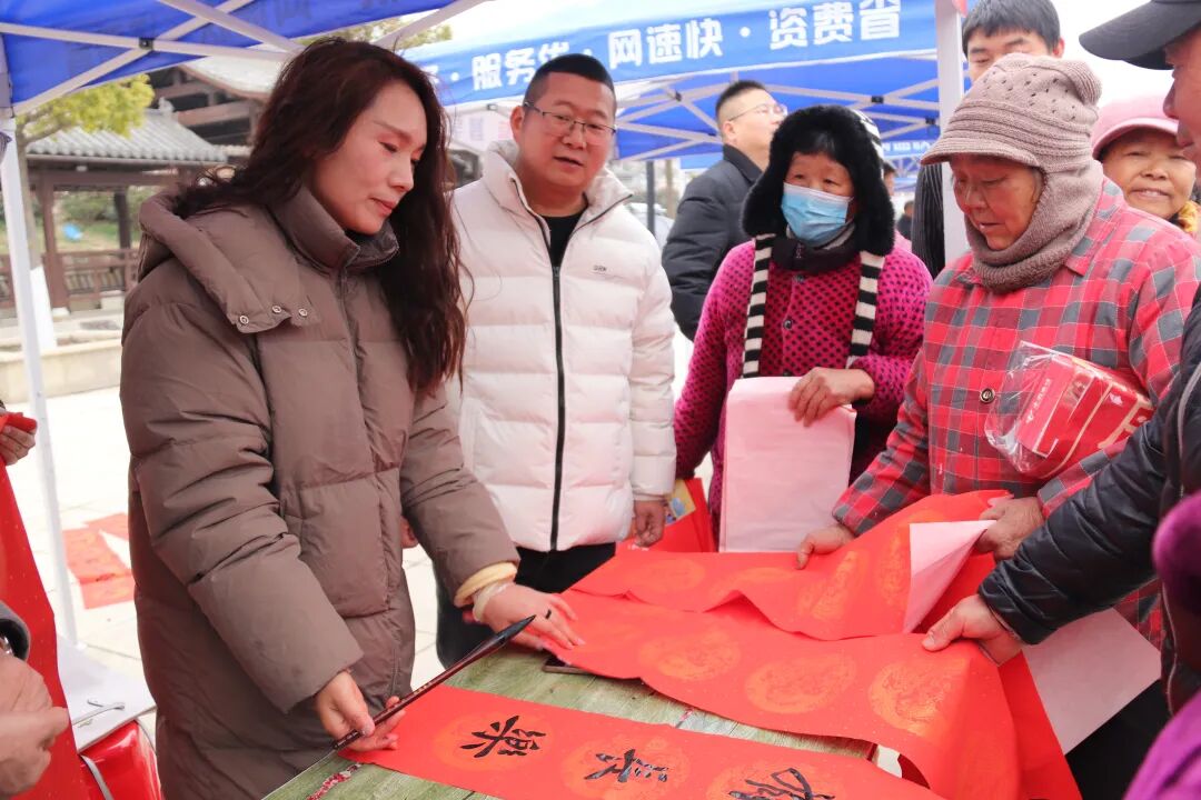 “快帮我拍一张,这字写得真有劲道!”“我要这副,寓意好!”……摊位前,等候的队伍排起了长龙,乡亲们或仔细欣赏书法家的创作过程,或兴致勃勃地挑选着心仪的春联内容,纷纷拿出手机记录下这珍贵的瞬间。刚拿到一副“福”字的村民张大爷笑得合不拢嘴:“早就盼着了!比起商店里买的印刷品,这手写的春联才有温度,才有真正的年味儿!”