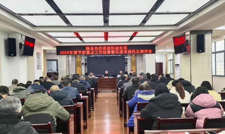 近日,随县自然资源和规划局召开2026年春节前重点工作部署暨年度考核民主测评会议,全面开展年度考核民主测评,部署春节前后重点工作、安全生产、信访维稳和作风纪律建设等各项任务,持续强化责任落实、严守纪律底线、筑牢安全防线,确保春节期间平安有序。(何苗苗)