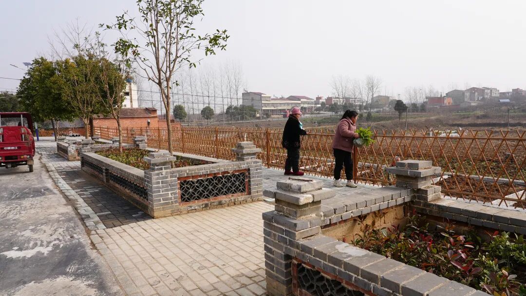 沿着新修的沥青路缓步前行,一幅宜居宜业的乡村画卷徐徐展开:新砌的围栏整齐划一,将家家户户的小院勾勒得清爽雅致;曾经零散的菜园被统一规划,竹制栅栏圈出一方方规整地块,蔬菜瓜果长势喜人;两处堰塘已完成清淤整治,新建的木质小亭子成为村民休憩闲谈的好去处;闲置空地变身精致小广场,孩童们追逐嬉戏,老人们围坐在一起晒太阳、话家常;墙体上的涂鸦清新明快,将田园风光与生活愿景融入景致,让村庄既有“颜值”更有“内涵”。