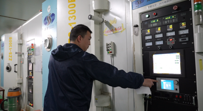 在镀膜无尘车间内,工程师杨小星正专注地监控着设备的运行参数。镀膜工序直接关系镜片光学性能、耐磨及抗腐蚀能力,是生产中的关键环节。“以前常年在外地打工,心里总挂念家里。现在在家门口上班,每个月收入稳定,既能挣钱又能顾家,心里踏实多了。”杨小星感慨道。