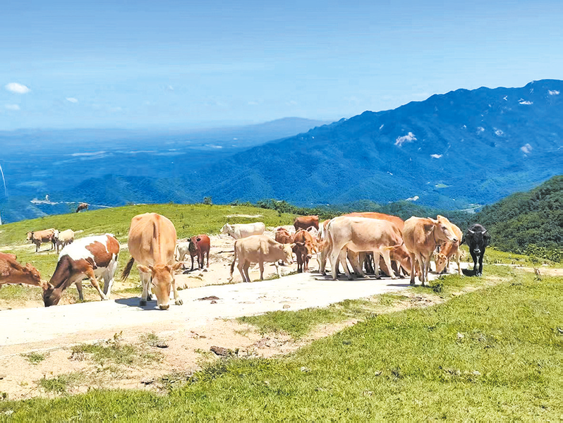 牧枣牛山上放养