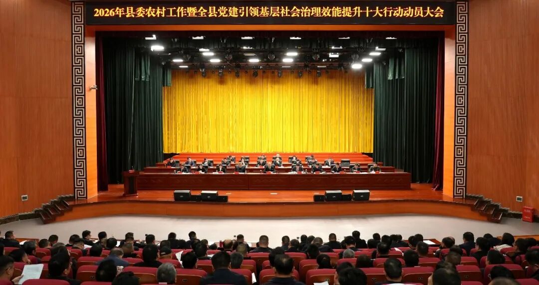 3月1日,2026年县委农村工作暨全县党建引领基层社会治理效能提升十大行动动员大会召开,深入学习贯彻党的二十届四中全会精神,全面落实习近平总书记关于“三农”工作与基层社会治理的重要论述,动员全县上下凝心聚力、真抓实干,奋力推动农业农村高质量发展,全面提升基层社会治理效能,为加快建设农业强县筑牢坚实根基。