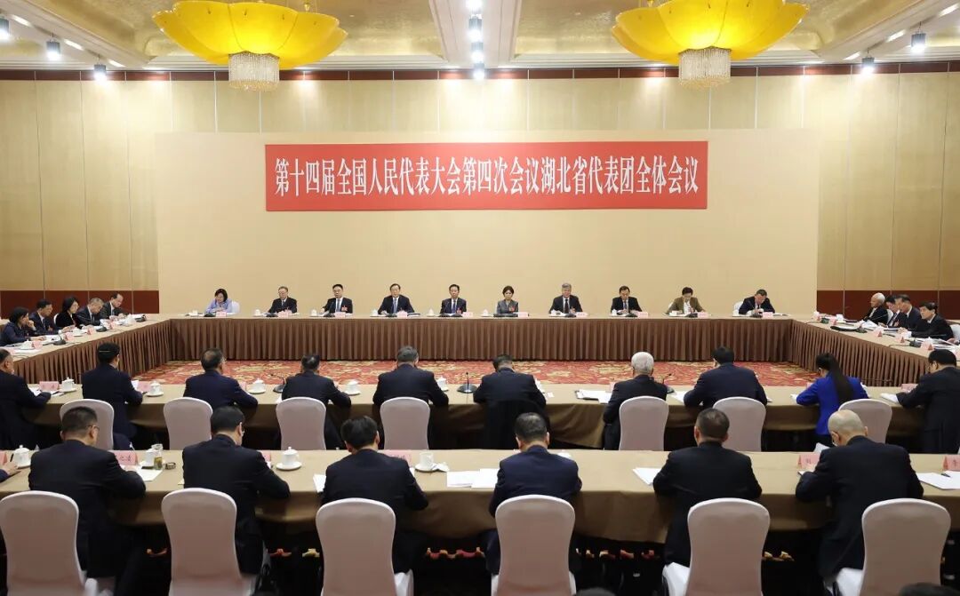 3月5日下午,十四届全国人大四次会议湖北代表团举行全体会议,审议政府工作报告。