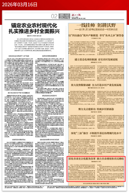 深化农业社会化服务改革 助力农业增效和农民增收