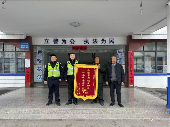 3月16日,事故当事人亲属将一面印有“雷霆出击,破案神速,一心为民,廉洁奉公”的锦旗送到随县公安局交管大队三中队民警手中,衷心感谢办案民警锲而不舍、全力侦破交通肇事逃逸案件。(戴玉平、周芮)