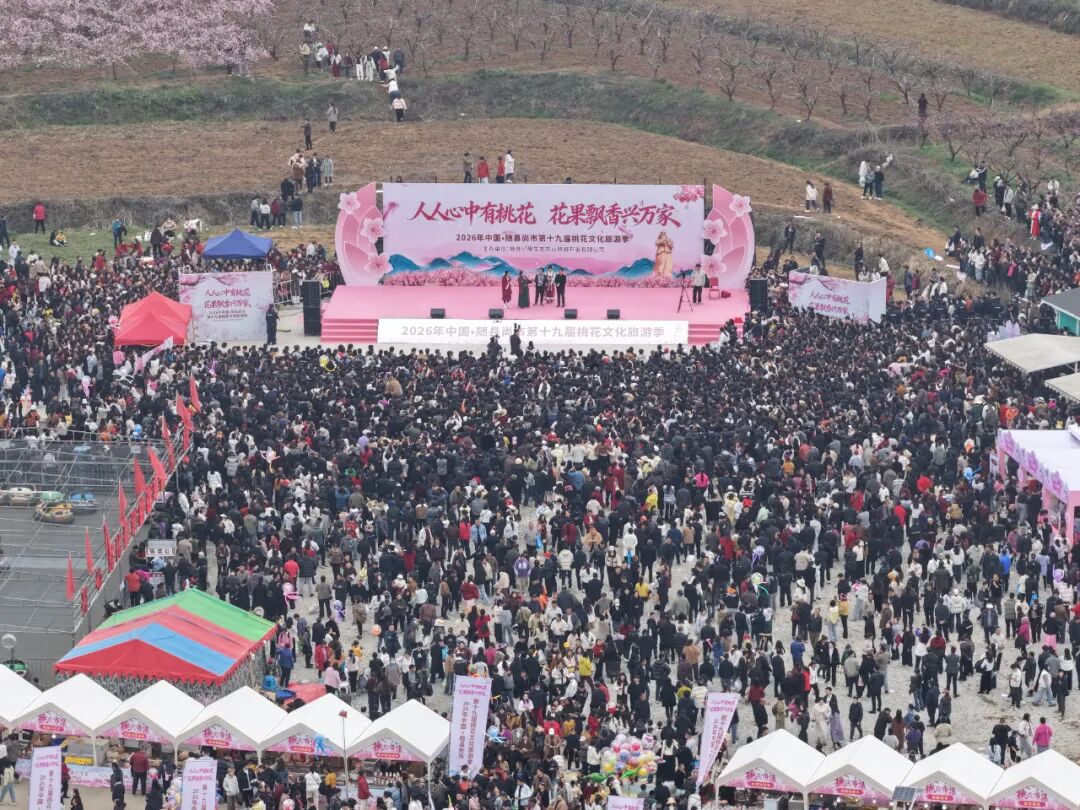 十里桃林迎宾客,花果飘香兴万家。3月19日,2026年随县尚市第十九届桃花文化旅游季正式启幕。本次活动以“人人心中有桃花,花果飘香兴万家”为主题,融合文化展演、乡村体验、产业互动等内容,生动展现乡村振兴的生动图景。