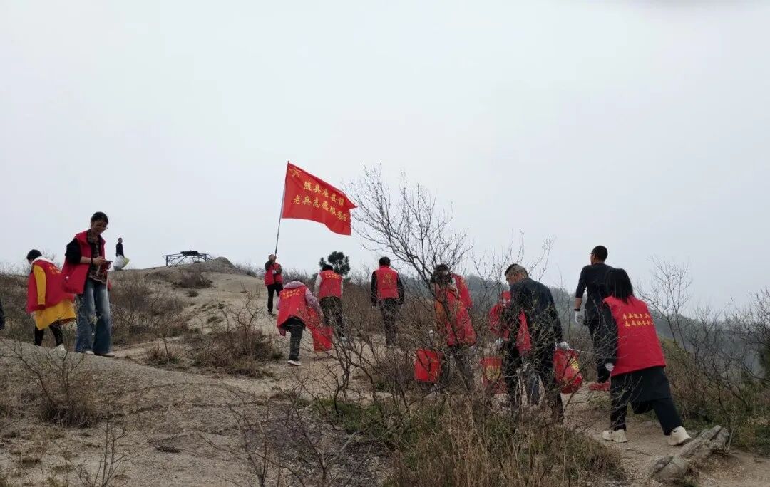 近日,唐县镇党群服务中心(退役军人服务站)组织镇老兵志愿服务队开展“清洁华宝山”环保行动,二十余名退役老兵登山捡拾垃圾,以实干精神倡导文明旅游。(魏晓伟、朱加林)